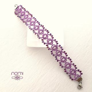 I have made a bracelet in vivid purple colour with shiny metallic beads for custom order. Pattern was inspired that one from Tina Frauberger book. Simple but so elegant:)